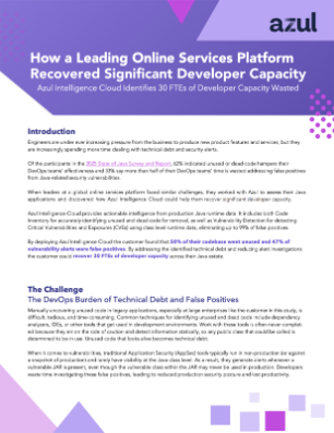 Dead and unused code drains developer productivity, slows code releases, and adds security risk. One global online services leader used Azul Intelligence Cloud to address this hidden problem across their Java estate – at scale.