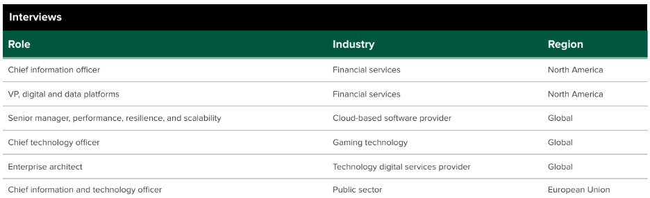 Forrester compiled a profile of a composite organization for a new Total Economic Impact™ (TEI) of Azul Prime study based on interviews with these six executives: