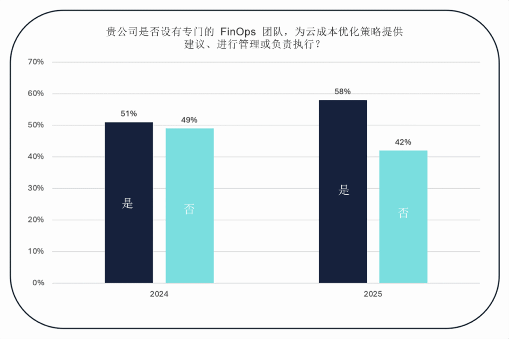 尽管 FinOps 的采用正趋于成熟,但它在企业中的广泛应用已不足为奇。根据《Flexera 2025 年云现状报告》,59% 的企业正在扩展其 FinOps 团队的职责,以重新掌控开支。事实上,已经部署或计划部署 FinOps 团队的受访企业同比增加了 8 个百分点。