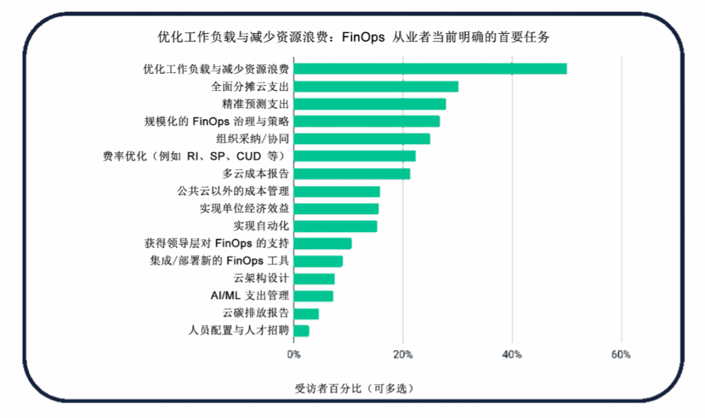 然而,正如《FinOps 基金会 2025 年 FinOps 现状报告》所强调的,如今 FinOps 团队正在加倍努力减少云资源浪费和优化工作负载,这两项工作已被列为首要任务。